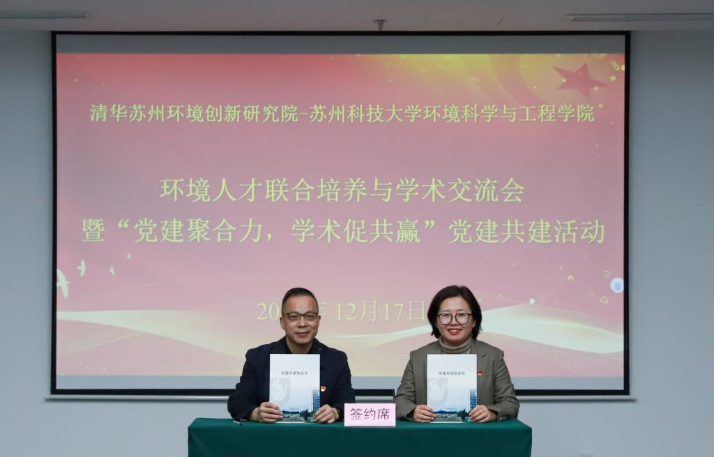 院长助理姜晶及联合培养导师参加交流。双方围绕党建共建、成人网培养、科研合作等展开深入探讨。会议由清华苏州环境创新研究院科研人才部副主任迟茜、人才培养管理办公室主任赵希共同主持。
