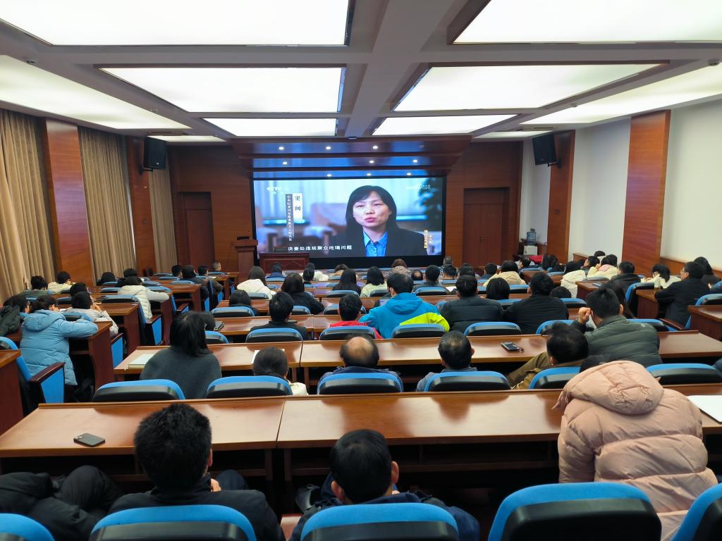 二楼报告厅召开教职工政治理论学习大会,会议由院党委书记潘杨主持,成人网
