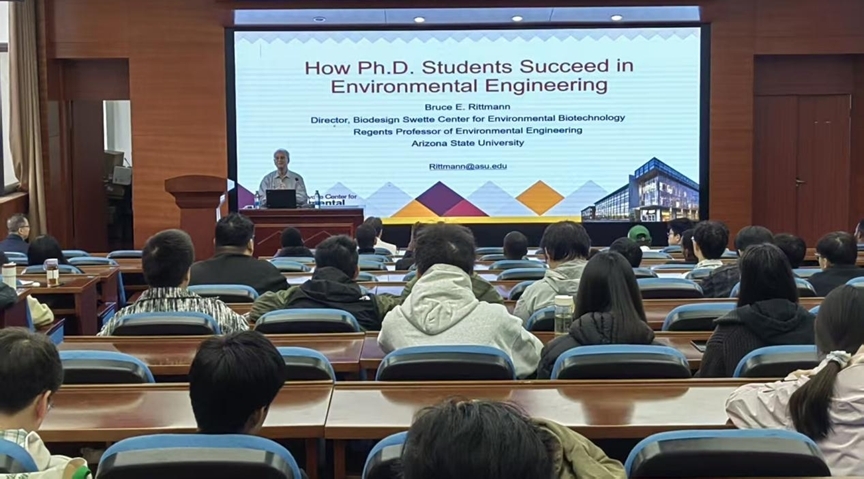 二楼报告厅作了题为《How Ph.D. Students Succeed in Environmental Engineering》的学术讲座。本次讲座由环境成人网